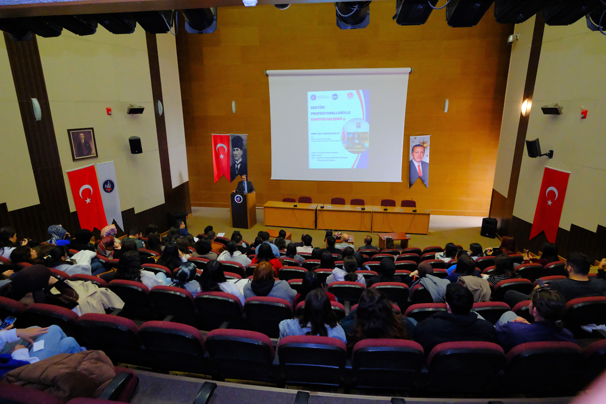 Üniversitemiz İnsan ve Toplum Bilimleri Fakültesi Bilgi ve Belge Yönetimi Bölümü tarafından düzenlenen “Sektör Profesyonelleriyle Kariyer Gelişimi – 5” etkinliği, alanında önemli akademik çalışmalara imza atan Çankırı Karatekin Üniversitesi İnsan ve Toplum Bilimleri Fakültesi Dekanı Prof. Dr. Coşkun Polat’ı ağırladı. Yahya Kemal Salonu’nda gerçekleşen programa Rektör Yardımcımız Prof. Dr. Erol Yılmaz ve İnsan ve Toplum Bilimleri Dekanı Prof. Dr. Abdussamed Yeşildağ ile akademik personelimizin yanı sıra öğrencilerimiz katıldı.