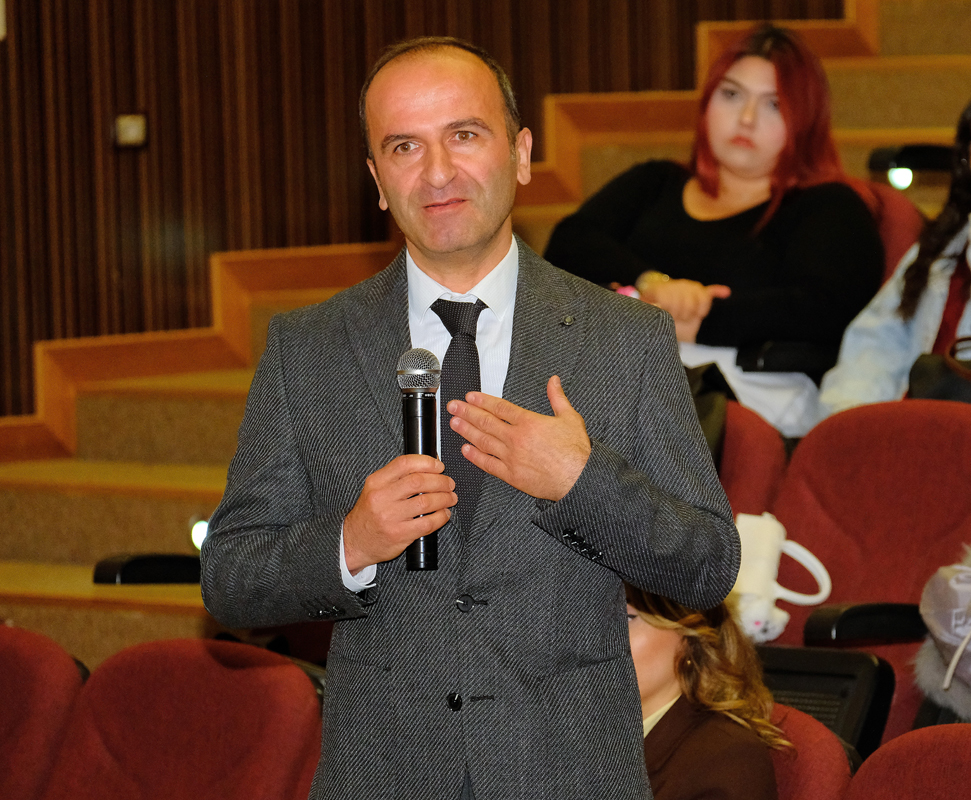 Saygı Duruşu ve İstiklal Marşı ile başlayan programın açılış konuşmasını gerçekleştiren Rektör Yardımcımız Prof. Dr. Erol Yılmaz, ‘’Çok kıymetli hocalarım ve sevgili öğrencilerim, hepinizi saygıyla ve sevgiyle gönülden selamlıyorum. Üniversiteler, sadece eğitim ve öğretim yapılan yerler olmanın çok ötesindedir. Bir milletin, bir devletin ve bir ülkenin lokomotifi diyebileceğimiz çok boyutlu fonksiyonları olan temel kurumlardan birisidir. Bu bağlamda üniversiteleri sadece bir fonksiyonu ile almak çok büyük eksiklik olacaktır. Bütün üniversitelerin, eğitim-öğretimin yanında araştırma-geliştirme, uluslararasılaşma ve toplumsal katkı gibi faaliyetleri var. Bu faaliyetler çerçevesinde doğal olarak üniversite denilince bir okul kimliğiyle ilk akla gelen eğitim-öğretim akla geliyor. Tam da bu noktada eğitim-öğretim denilince sadece derslerde anlattığımız ya da laboratuvarlarda uygulamalı olarak gösterdiğimiz dersler anlaşılmamalıdır. Bunlarla sınırlı kalmak sizlerin donanımını zayıf bırakacaktır. Bu çerçevede bizler Üniversite yönetimi olarak, sektörün sahadaki ve akademideki ustalarıyla sizleri bir araya getirmeye çalışıyoruz ki hem onlar uzmanlıklarını ve deneyimlerini sizlere aktarsınlar, hem de sizler kariyer hedefinizde nerede olmak istiyorsanız onunla ilgili sorularınızı sorun. Ufkunuzun açılması için uzman isimlerle sizleri bir araya getiriyoruz. Bugünkü konuğumuz olan Prof. Dr. Coşkun Polat, uzun yıllardır tanıdığım, sosyal ve mesleki anlamda benim için her zaman ilk sırada olan insanlardan biridir. Coşkun Hocamız, birçok şapkası olan bir uzman. Rahatlıkla Üstad diyebileceğimiz, hocaların hocası diyebileceğimiz bir pozisyonda. Kasım Hocanız ve Ali Hocanız, Coşkun Hocamızın öğrencisi. Prof. Dr. Coşkun Polat, Bilgi ve Belge Yönetimi alanında 2 bölüm kurmuş bir hocamızdır. Atatürk Üniversitesi ve Çankırı Karatekin Üniversitesinin Bilgi ve Belge Yönetimi Bölümlerini kurdu. Bununla da yetinmedi. Yaptığı çalışmalar neticesinde bölümü, FEDEK (Fen, Edebiyat, Fen- Edebiyat, Dil ve Tarih- Coğrafya Fakülteleri Öğretim Programları Değerlendirme ve Akreditasyon Derneği) tarafından akredite edildi. İnşallah biz de gelecek sene başvuracağız. Akreditasyonla birlikte aldığınız diplomanın yurt içinde ve yurt dışında kıymeti daha da artacaktır. Kuşağımızın en deneyimli hocalarından biri Prof. Dr. Coşkun Polat Hocamızın, sahayı çok iyi bilen bir akademik deneyimi var. Sağ olsun davetimize icabet etti. Katılımlarınız için hepinize teşekkür ederim.’’ ifadelerini kullandı.